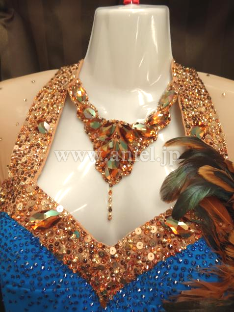 胸元やアクセサリーはスワロフスキーストーンやスパンコールをゴージャスに装飾されています。