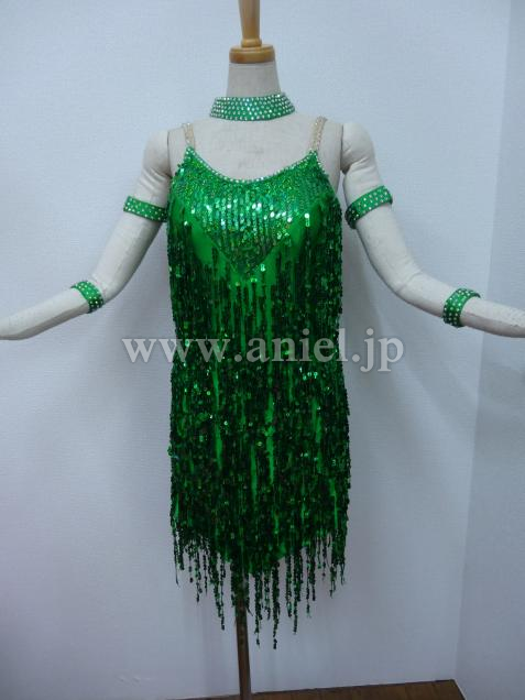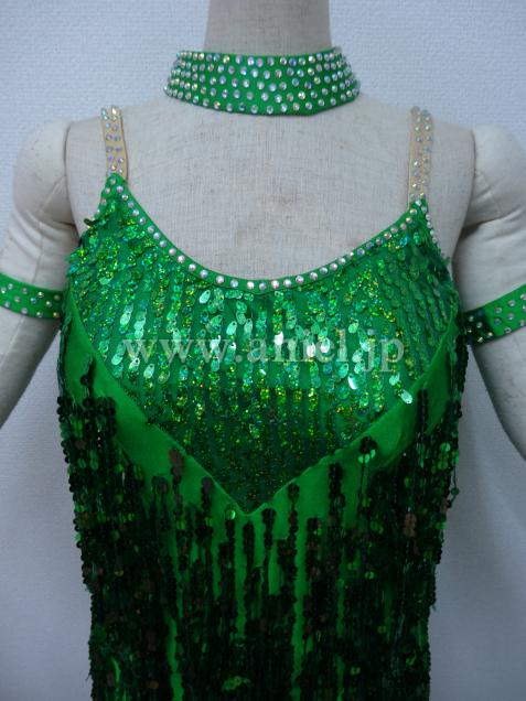 スパンコールフリンジが踊るとキラキラ揺れるドレスです。