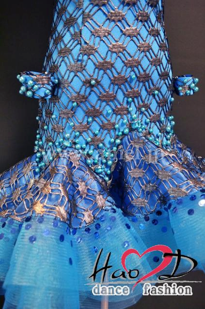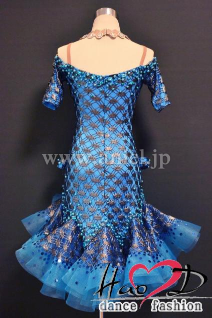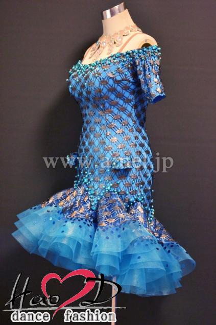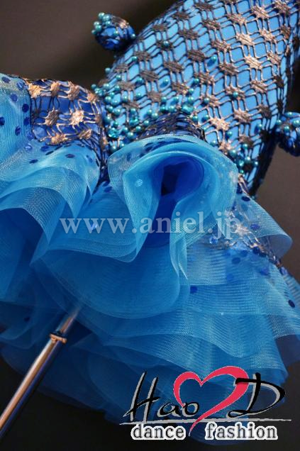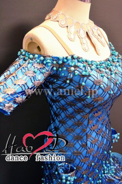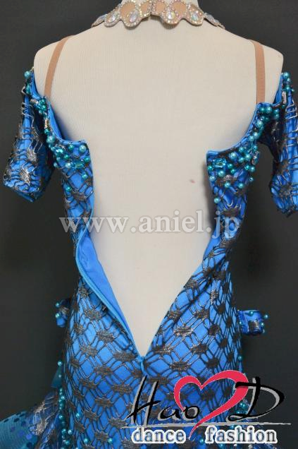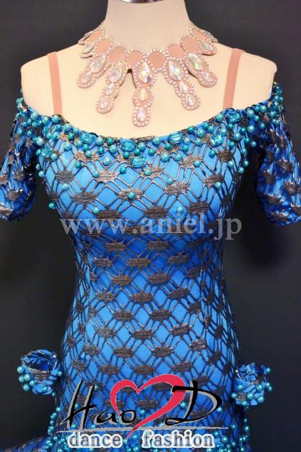 飾り→★青いパールと大粒石をデコルテとヒップ周りにシンプルに散らしてお上品;