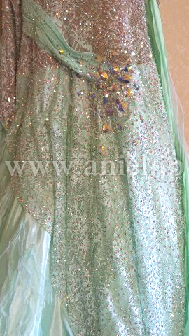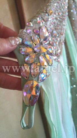 スカートもボリュームがあり袖の先にも大きな石がたくさんついています。