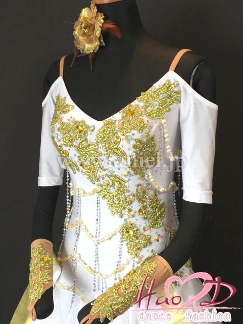 ★ゴールド色のモチーフに明るい黄色い石を万編無く貼り付け、身頃にはオーロラ石を散らしてキラキラ;