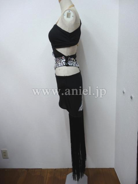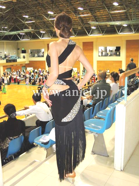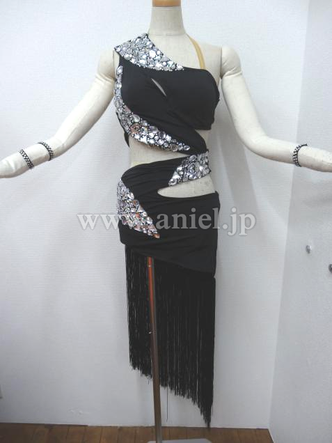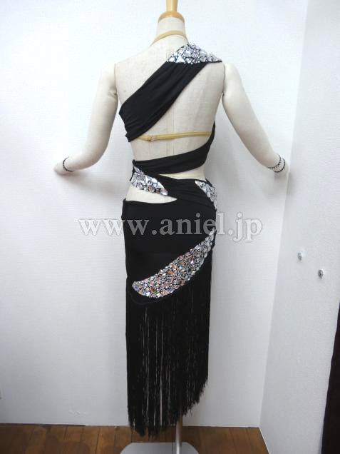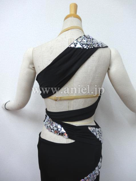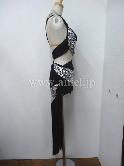 布がクロスにかけられたデザインのセクシーなラテンドレスです。