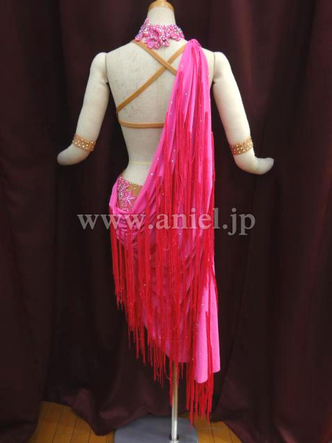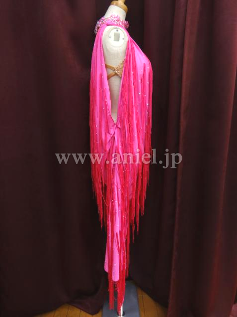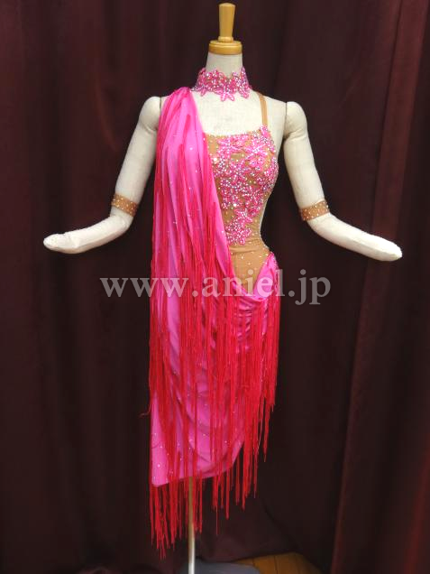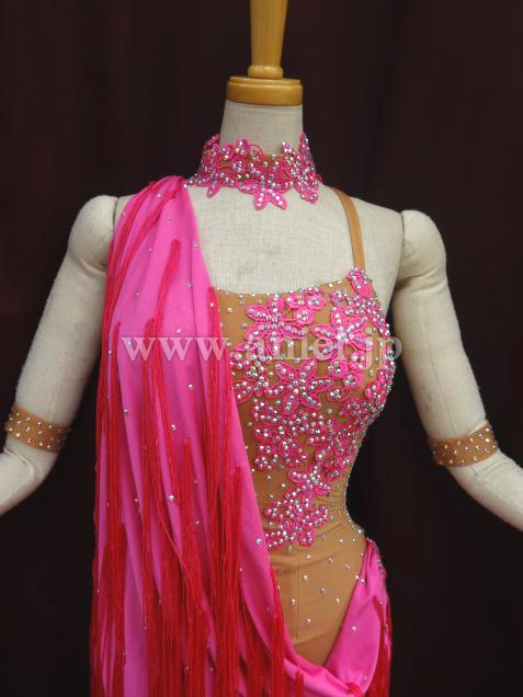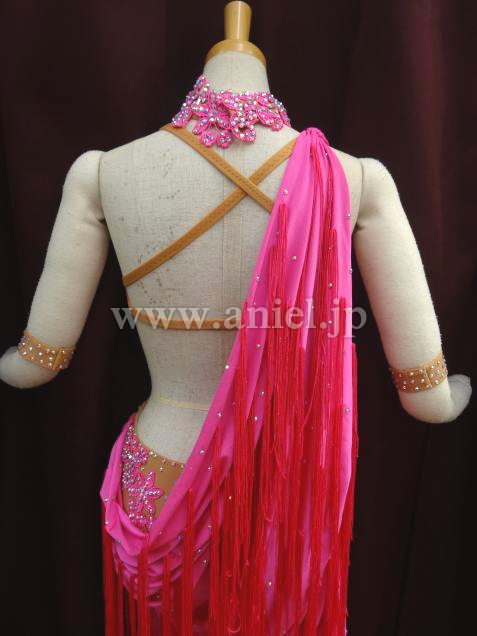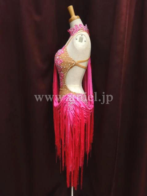 スキンカラーのレオタードにピンクの布が覆われているドレス。