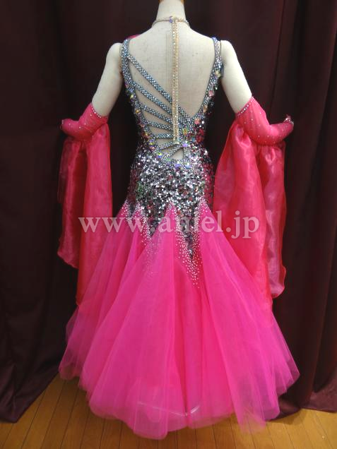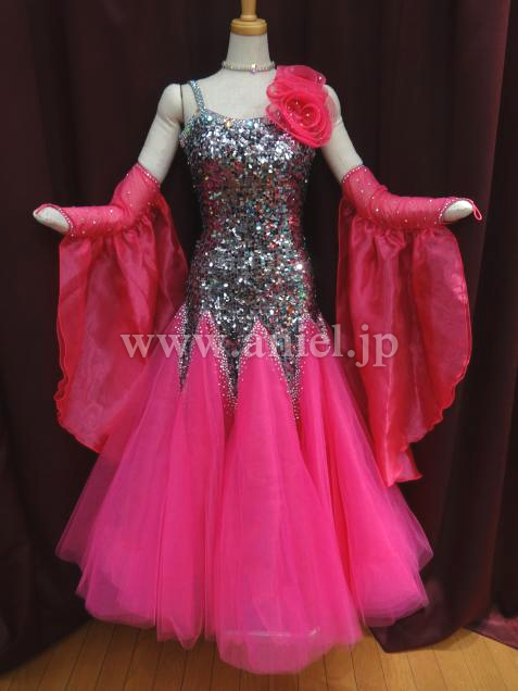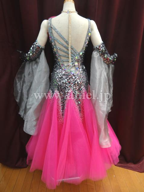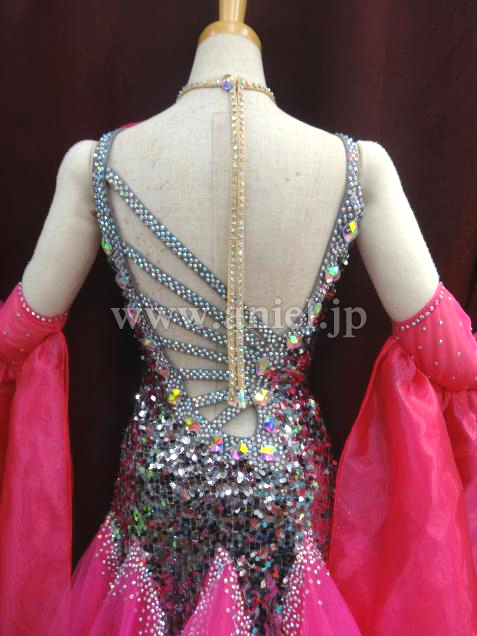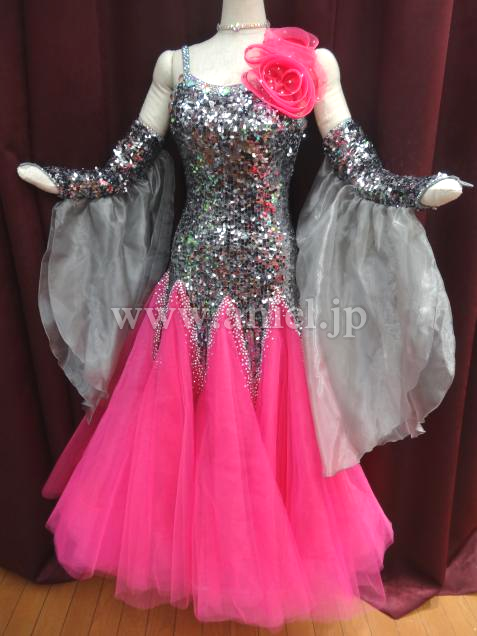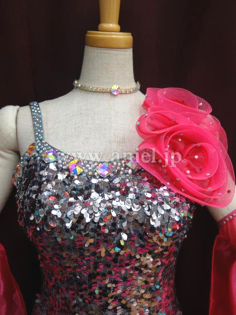 グレーのスパンコールがボディに沢山使用されている、キラキラ光るドレスです。
