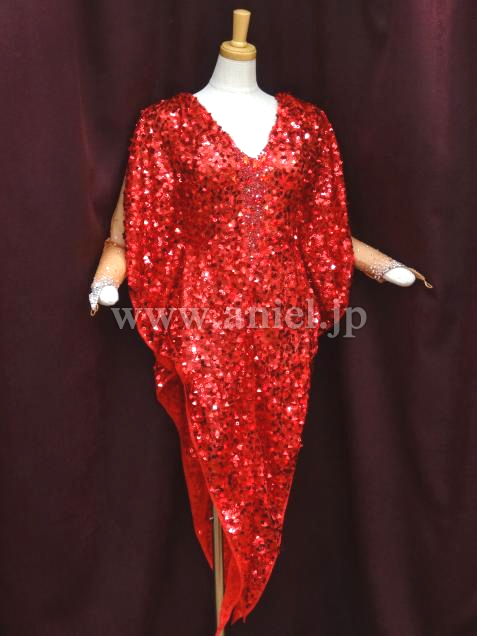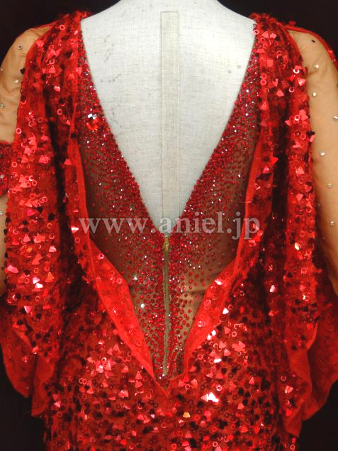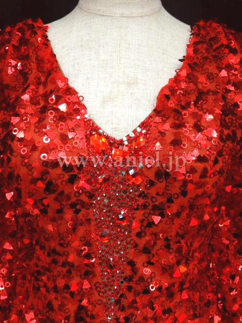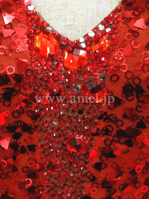 ボディのセンターや背中には赤のストーンがびっしり貼られています。