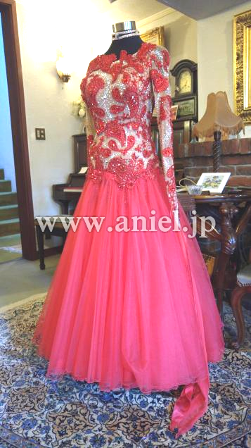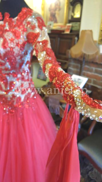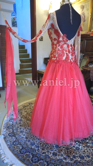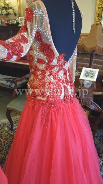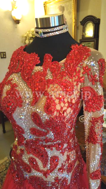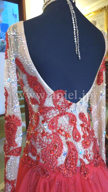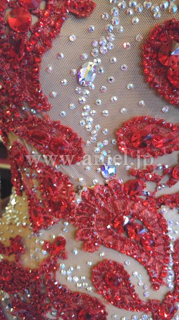 とにかくベージュネットにのせられたモチーフと石の数が半端じゃありません。ボディの丈あげも見事で、よく見ないとわかりません。チュールスカートの動きの素晴らしさはYoutube で確認してください。とにかく発色が綺麗でどんな会場でも目立ちます。さすがクリスアン!