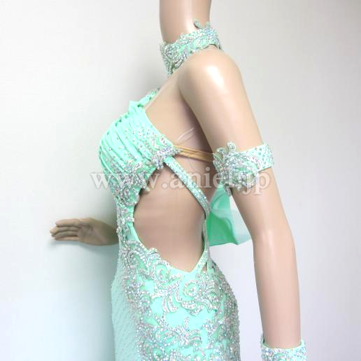 肩からのフリルや、全体に散りばめられたストーンが豪華さを出しています。