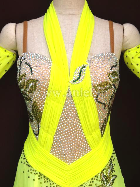 ホルターネック風のデザインが縦のラインを強調し、すっきりと見せてくれます。
