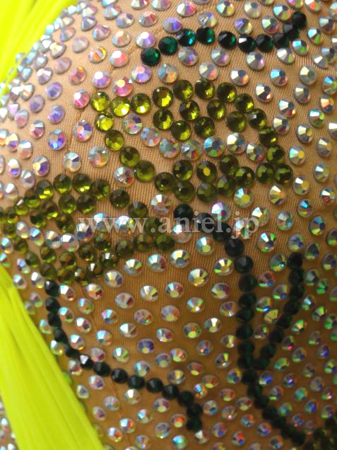 ボディにはびっしりとストーンが貼られ、葉模様が描かれています。