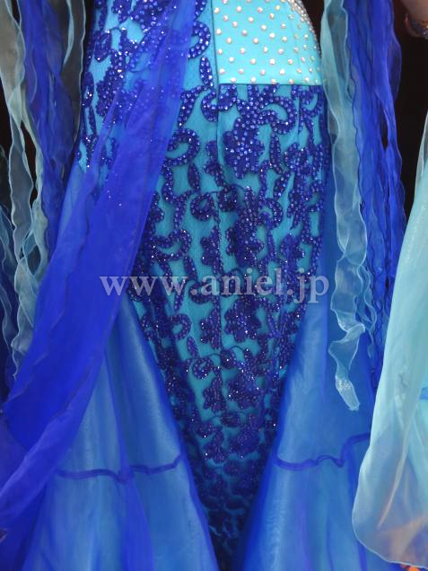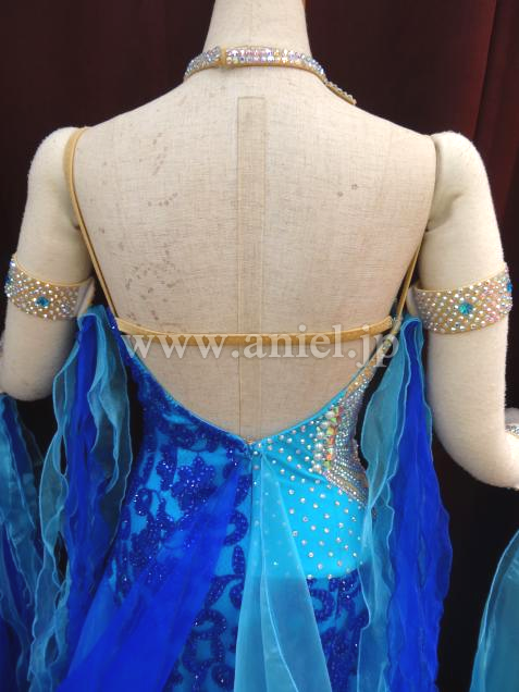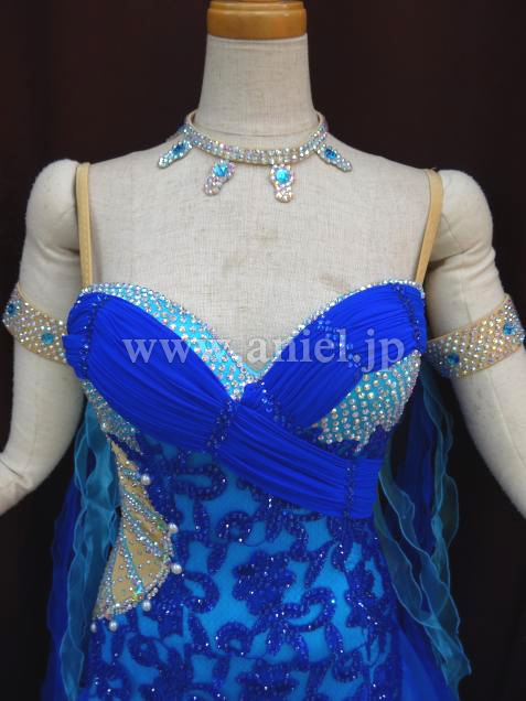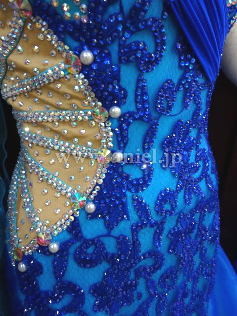ボディには青のモチーフレースにストーンがびっしりと貼られていて非常に豪華です。