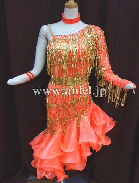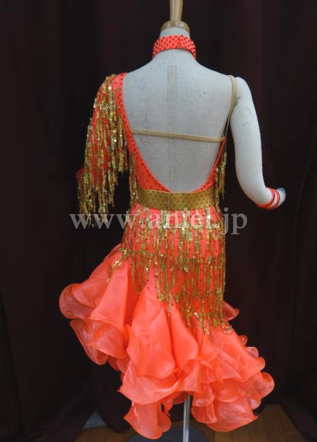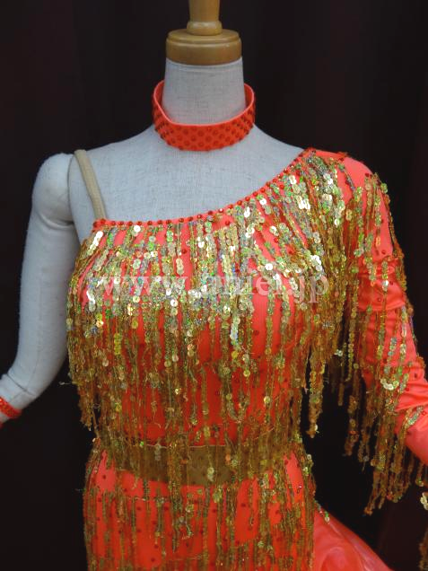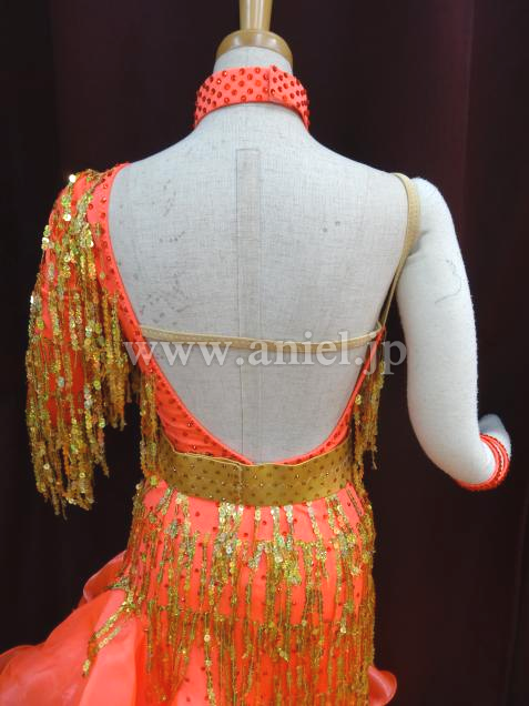 ワンショルダーデザインの華やかなラテンドレスです。