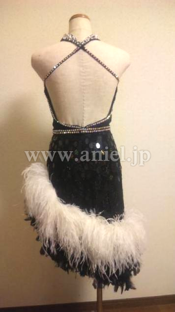 スカートの裾の白のふあふあファーと黒のシャープな羽根が素敵です。