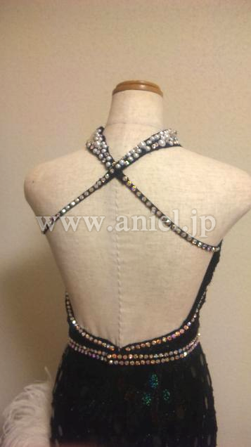 ドレスは軽く、胸元のラインストーンと白のパールが華やかです。