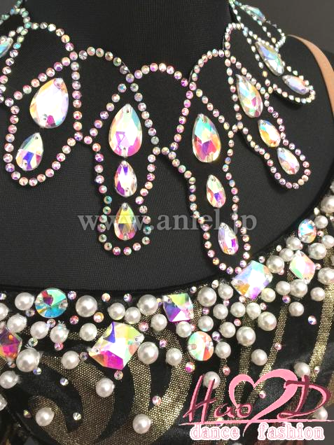飾り→★白いパールと大小粒石をデコルテとヒップ周りにシンプルに散らしてお上品;