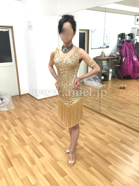 ボディやネックレスはスパンコール生地でキラキラとよく光ります。