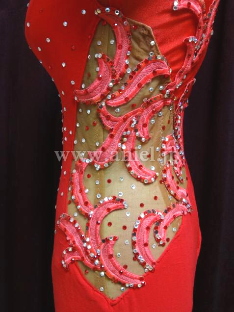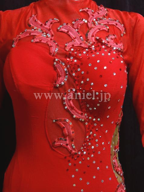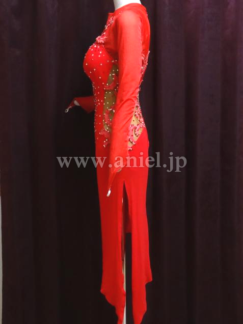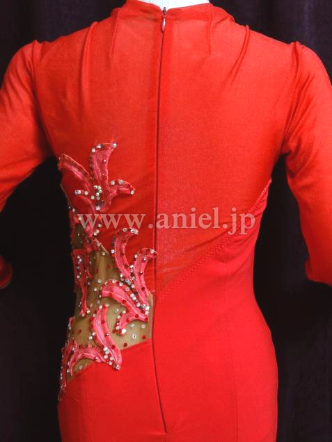 サイドのスキンカラーのくり貫きが、ウエストラインを出してくれます。