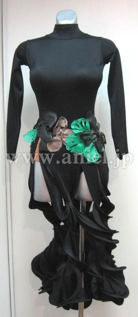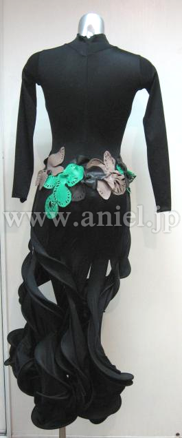 腰回りに緑とベージュ、黒のモチーフがつけられています。