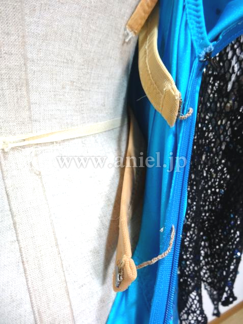 モチーフレースにびっしり貼られたストーンがキラキラと輝きます。