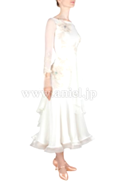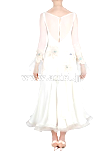 繊細なレースモチーフがあしらわれた非常に美しいドレスです。