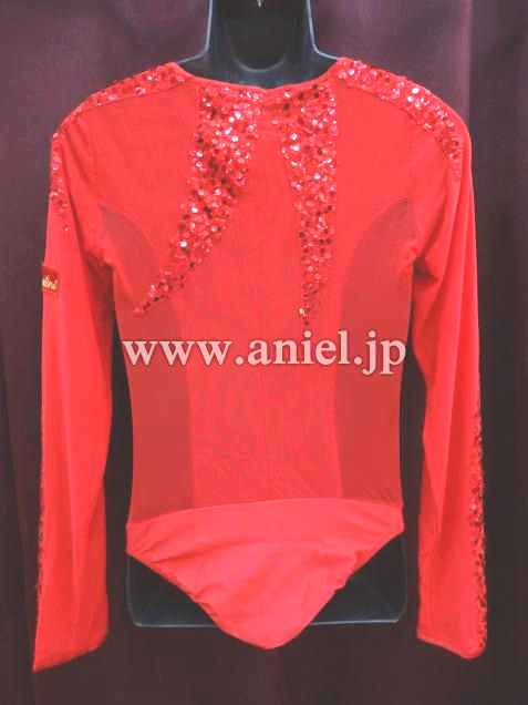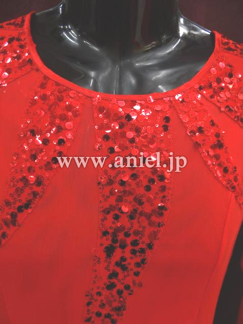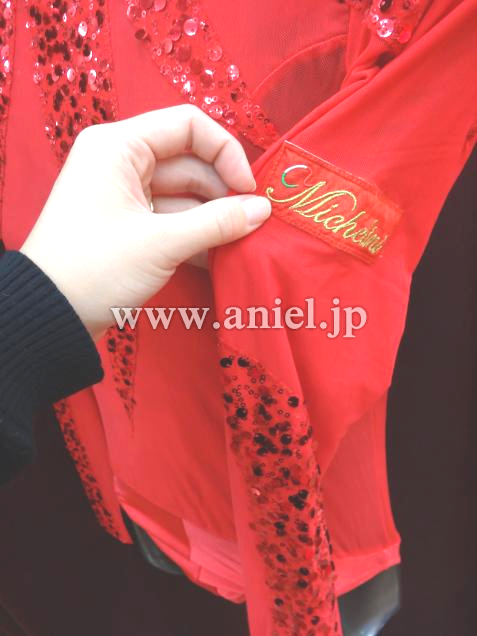 Altamoda Micheliniの中古ラテンシャツです。多少使用感はありますが、メーカーにより手直しされているため、中古品といえども美品です。経年劣化はしているため新品同様とまでは言えませんが、状態は良好です。セール品です。首回りのすっきりした赤のラテンシャツです。襟元から放射状に付いたスパンコールの装飾がエレガントです。ガブリエレ・ゴッフレードモデルです。