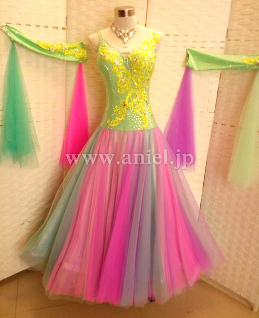 カラフルな色合いがキュートなドレスです。