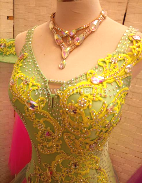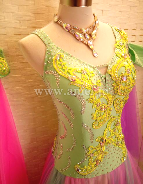 ボディのモチーフレースはチェコ製ストーンで装飾されています。