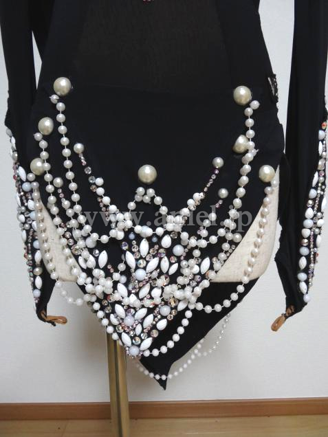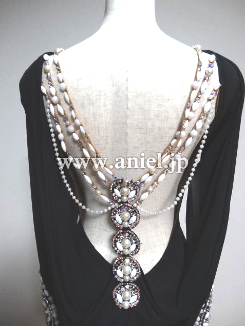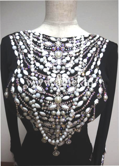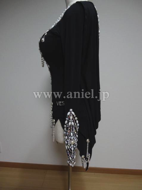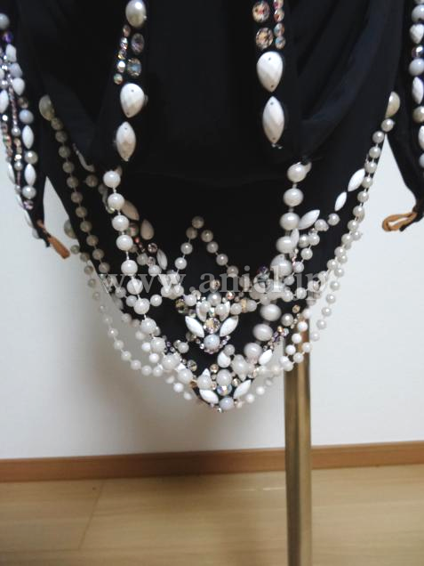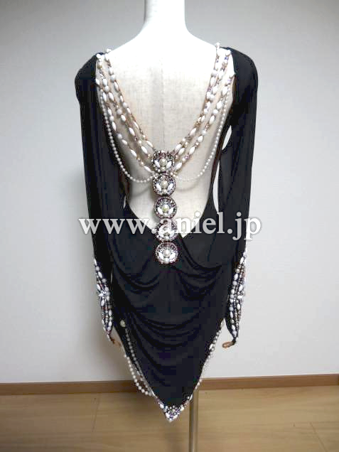 とても個性的でVESAならではのデザイン、素晴らしくエレガントなドレスです、足が美しくスタイル良く見えます、黒ですが装飾が非常にゴージャスで大変フロア映えします、また露出が少なく着やすいです、この豪華さですがとてもリーズナブルにさせて頂いています