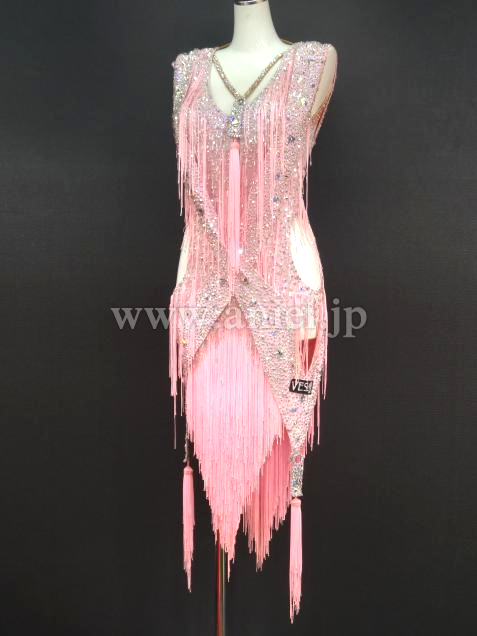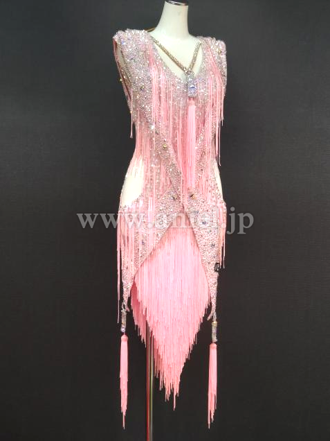 スカートにはフリンジが使われサイドの裾、胸元、背中には大きなタッセルフリンジの装飾があり踊るととてもよく動きます。