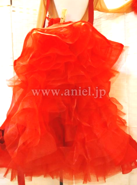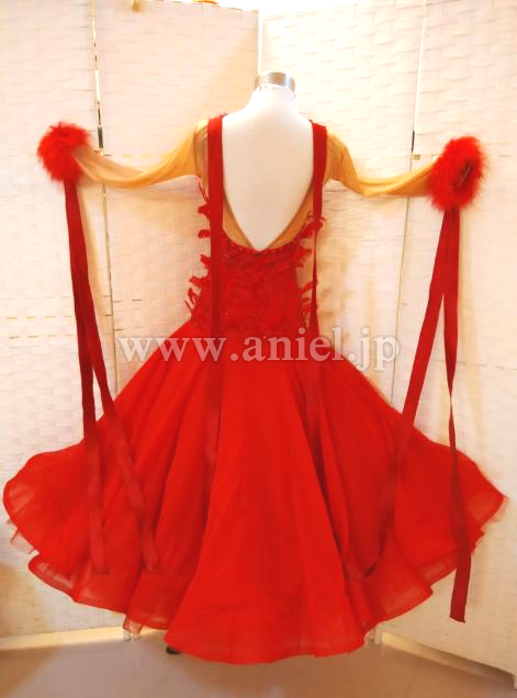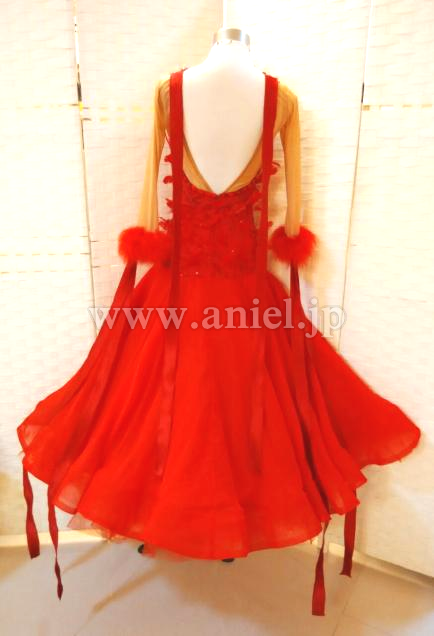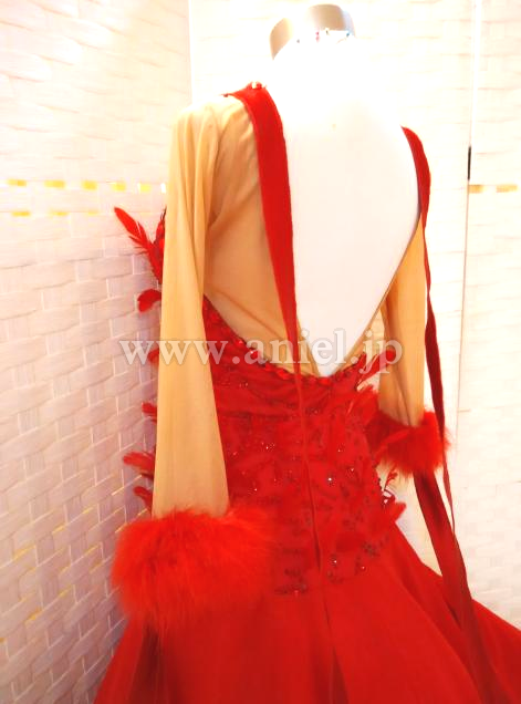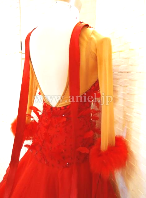 背中と袖からロングリボンが垂らされ上品に踊ります。