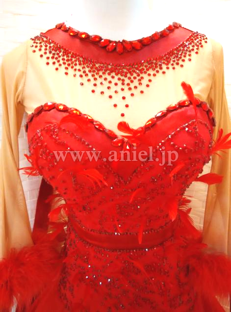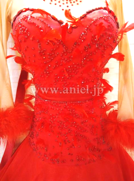 ボディにたくさんのスワロフスキーストーンと羽根が装飾されています。