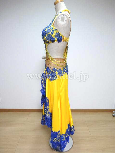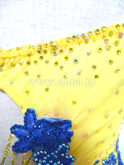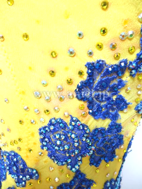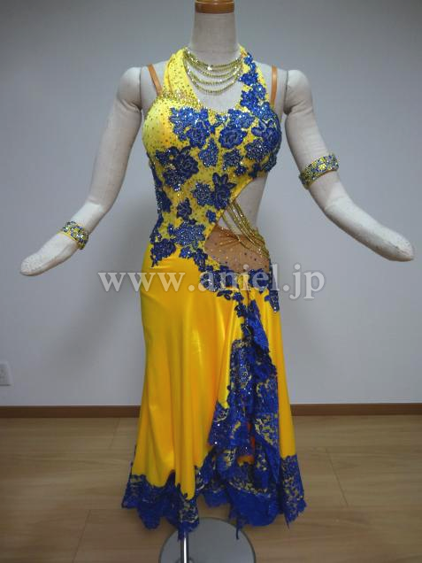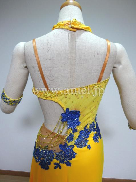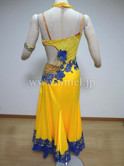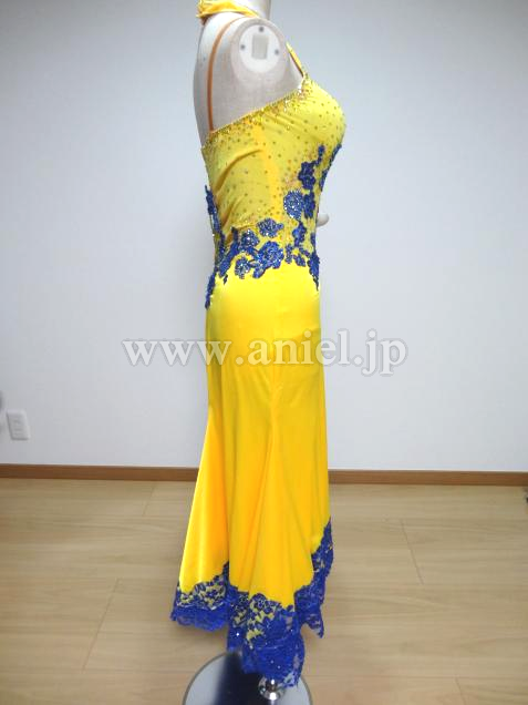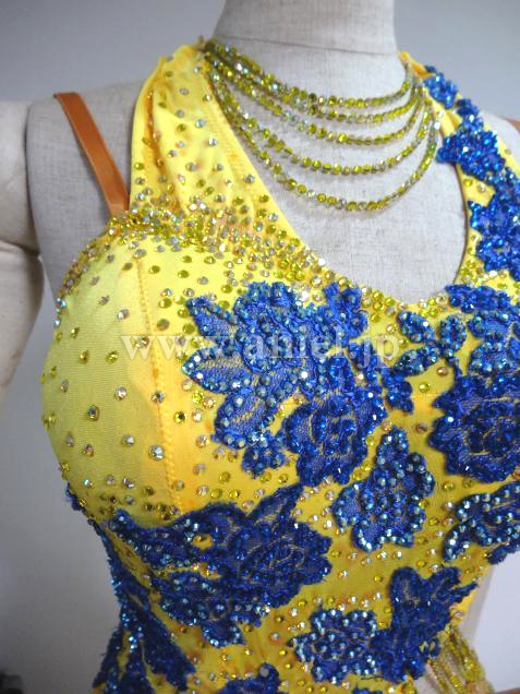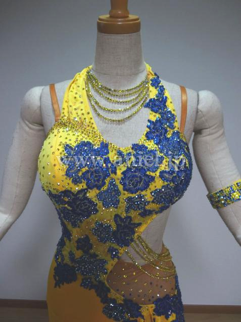 黄色に、青のモチーフで装飾されたラテンドレス。