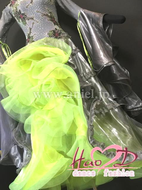 ★二枚目-----蛍光緑のパールシフォン生地、幅広いホースヘアを中折して裾のウエーブ感アップ;