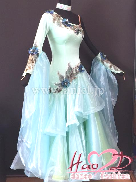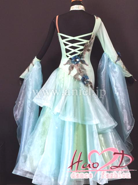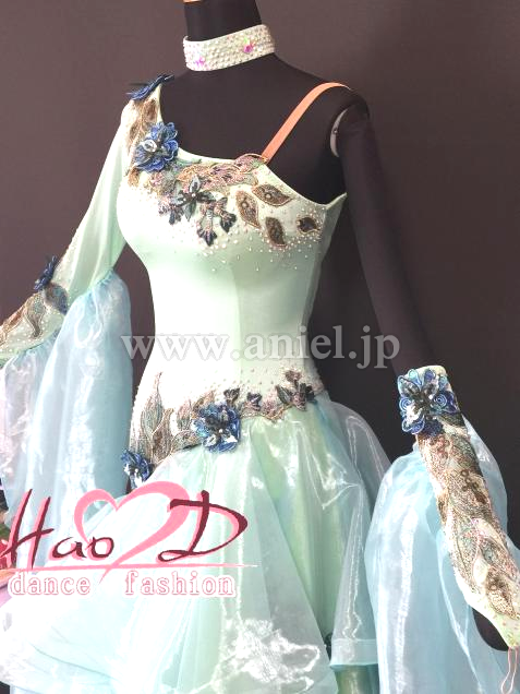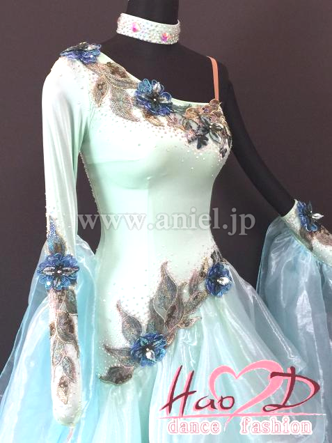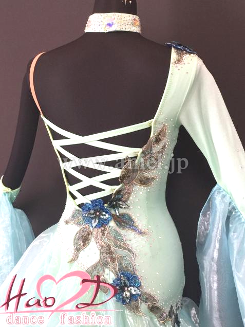 飾り→肩、背中とヒップに葉と花も立体モチーフを斜めに施し、シンプルで上品な雰囲気;