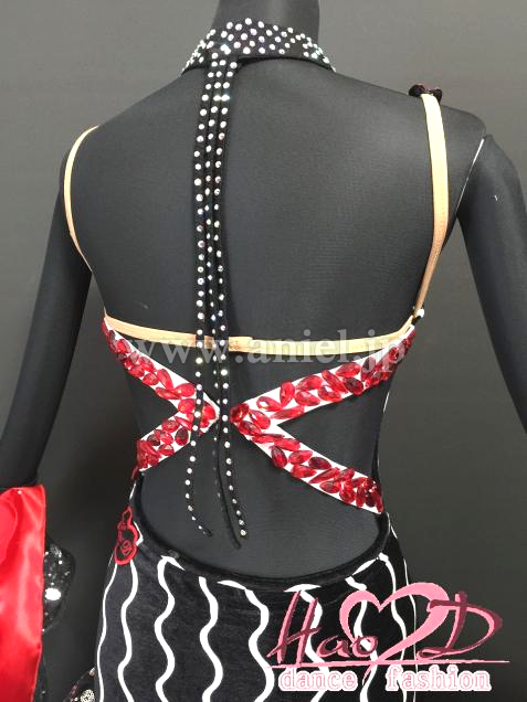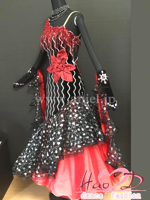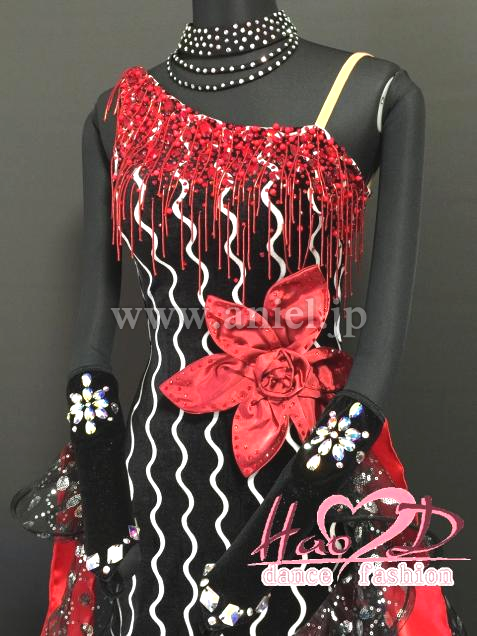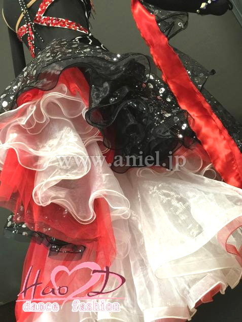 ★三、四枚目-----胸元の赤い飾りと対応に真っ赤なチュール生地を二枚重ね、斜めにカットしてディヤードラインにアレンジするのも良いかも;