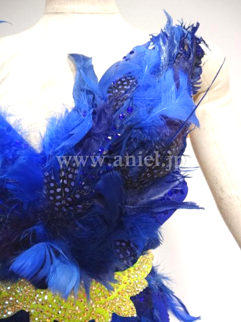 羽根を胸元とヒップに使っています。
