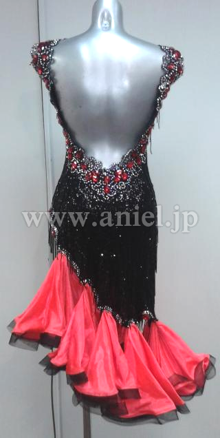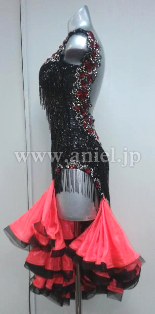 黒のボディに赤のフリルスカートが華やかなドレスです。