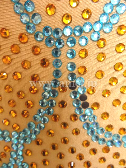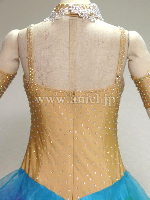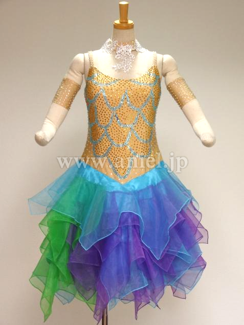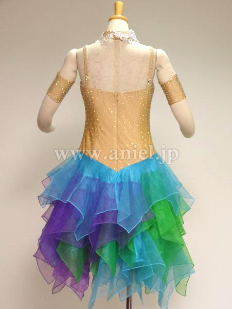 スカートが青系のカラーをMIXさせたカラフルなドレス。