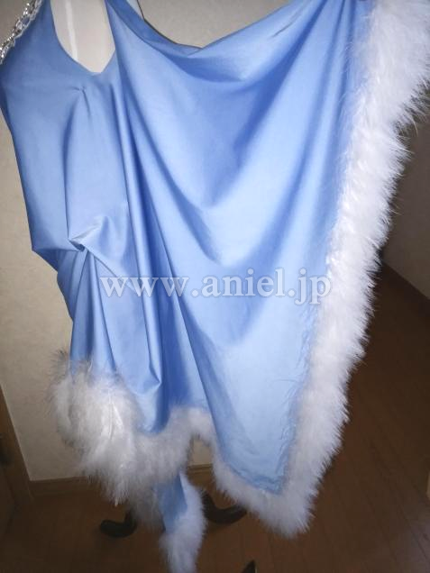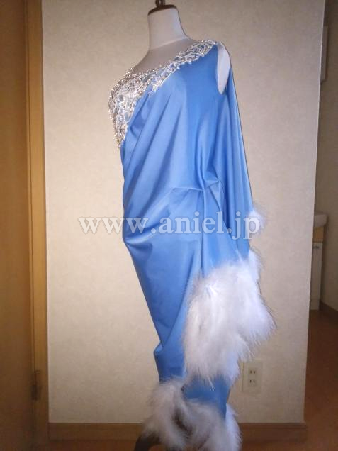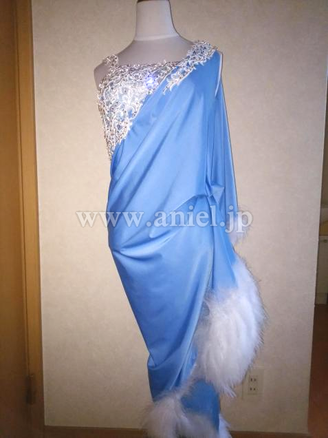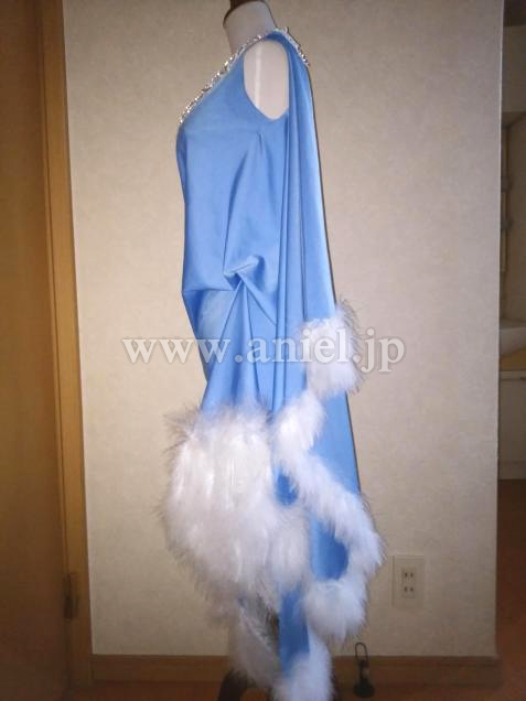 ドレープと羽根が優雅な雰囲気のドレスです。