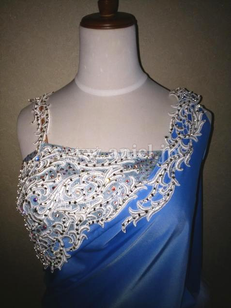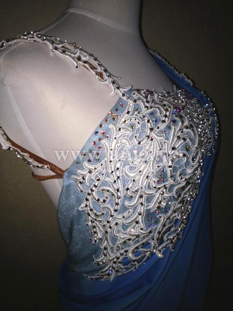 胸元のモチーフとスワロフスキーが華やか。インナーはタカダンスファッション。ルンバに最適なドレスです。