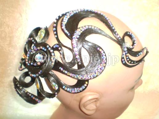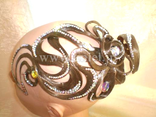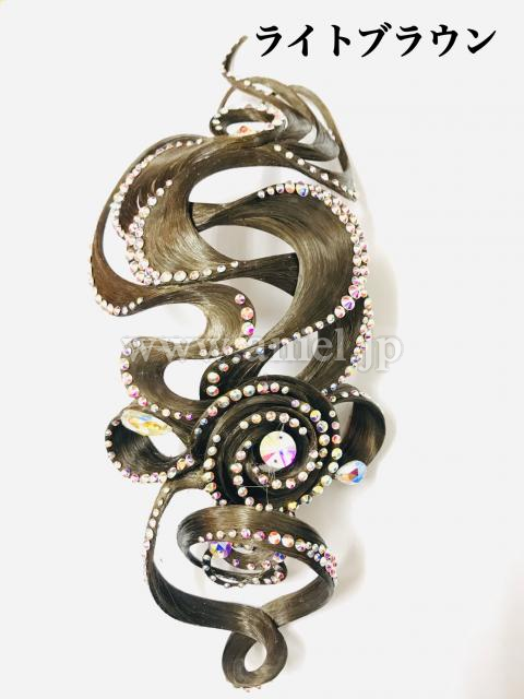 こちらの商品は片端のトルネード部分をシニョンに被せることにより、シニョンと飾りが一体化したデザインになり、ヘア全体のトータルコーディネートが可能です。