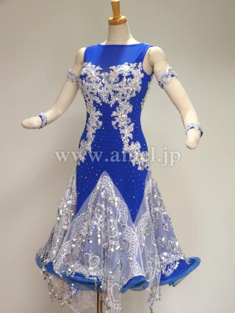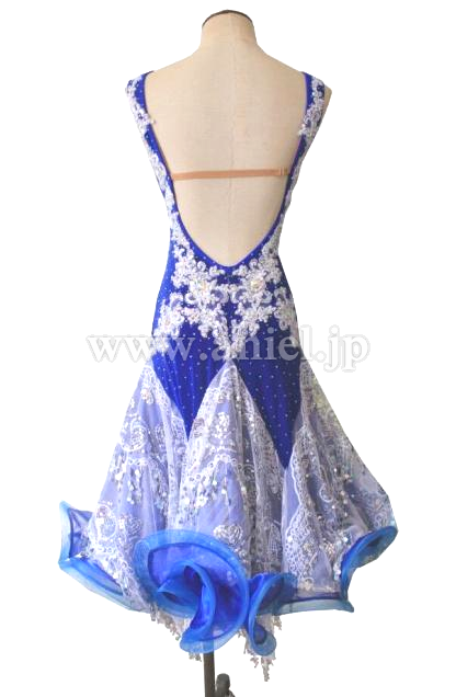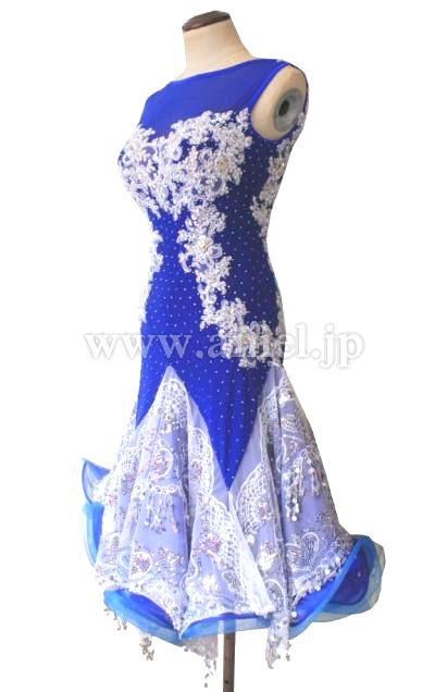 フレアー型スカートで、丈が少々長めのラテンドレスなので、身長155cm以下の小柄方ならモダンドレスとして着用出来るかと思います。