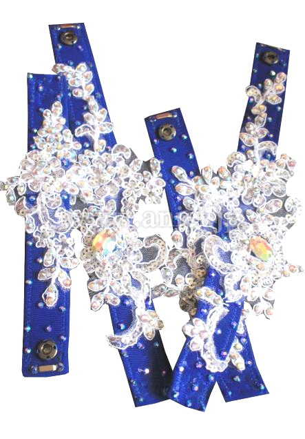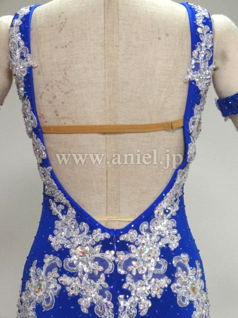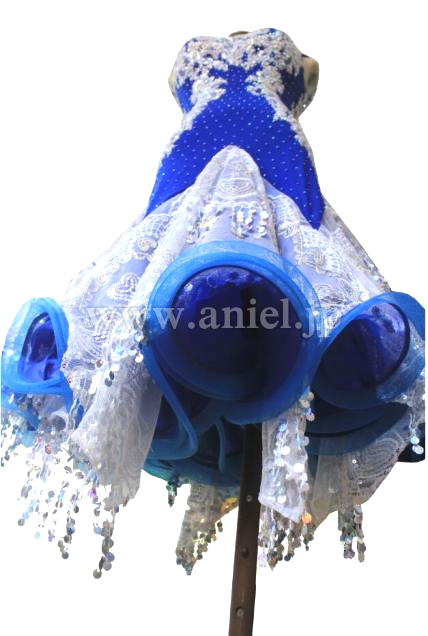 ★モチーフには密集に、青い身頃に点々と、オーロラ虹色の石を豪華に飾り付けており;