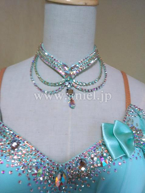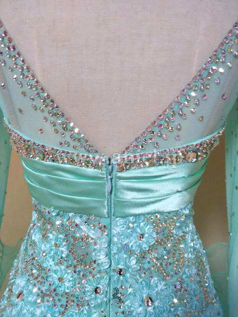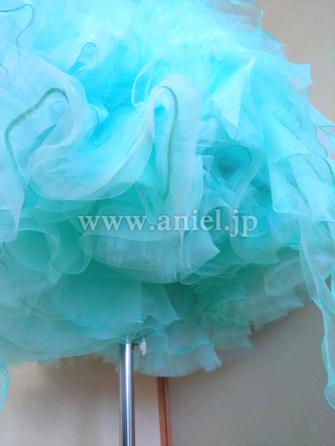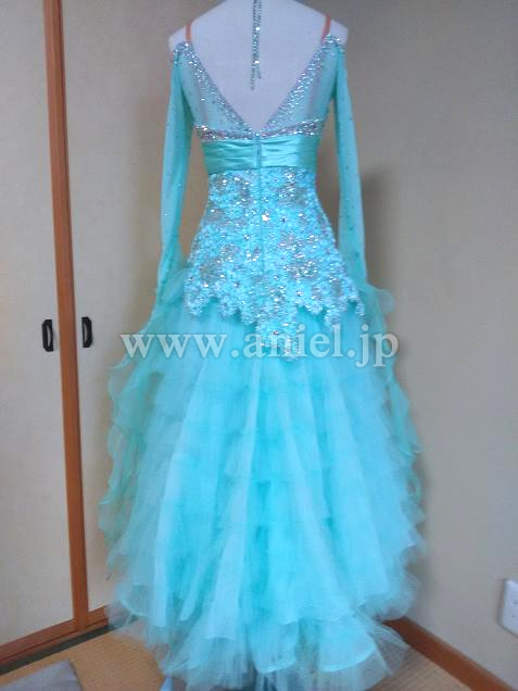 背中は開きすぎないV字で、ボリュームのあるスカートでよく舞ます。