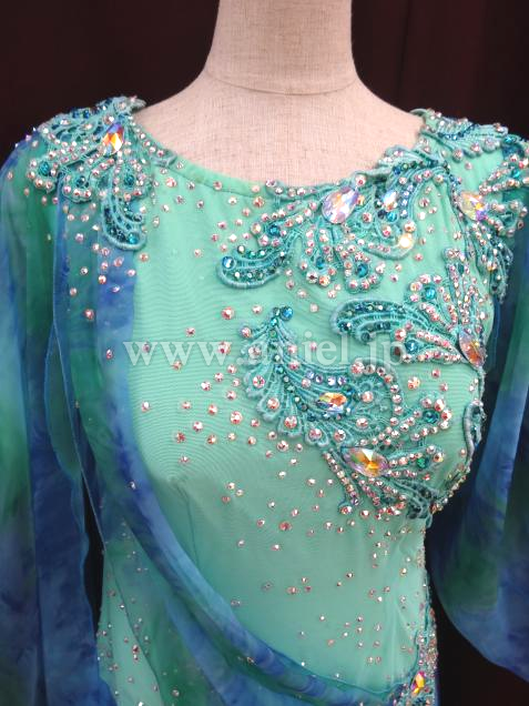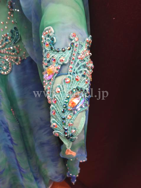 ボディや袖口にはモチーフレースにスワロフスキーがあしらわれキラキラと輝きます。
