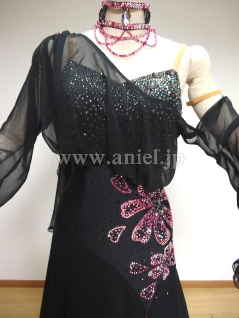 石で、大きな花が描かれています。シースルーの袖がおしゃれ。