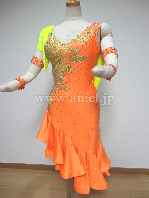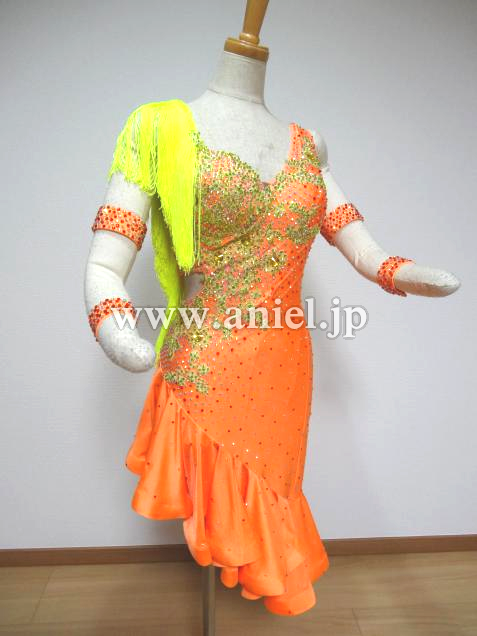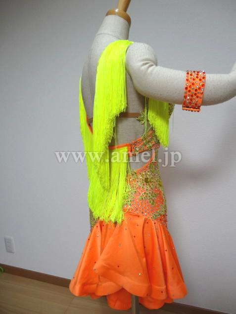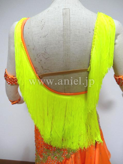 オレンジに、黄色のフリンジが肩と背中付いています。
