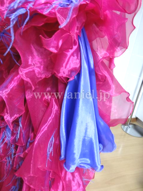 インナースカートと、スカートの羽根に青みがかった紫の色が使用されています。