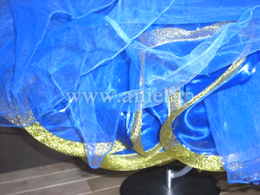 アンダーパニエにはゴールドのホースヘアーでクルクルとデザインされているので、動きがより大きく見えます大きなフロートがお袖についています。このお値段には見えない素敵なドレスです。