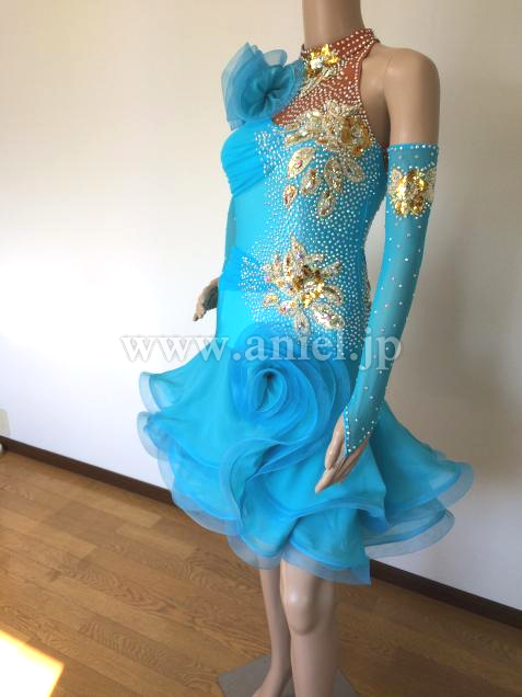 スパンコールやストーンが使われ、スカートもフレアがたっぷりです。