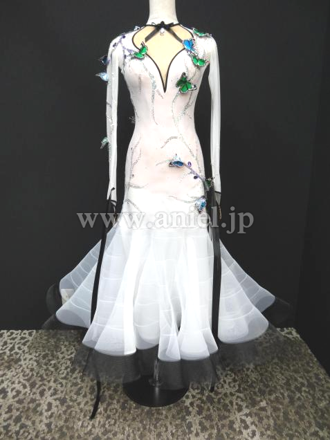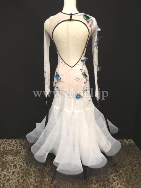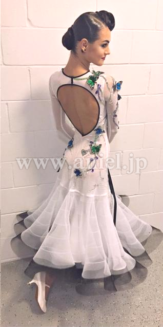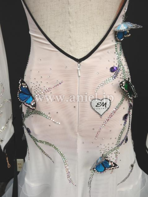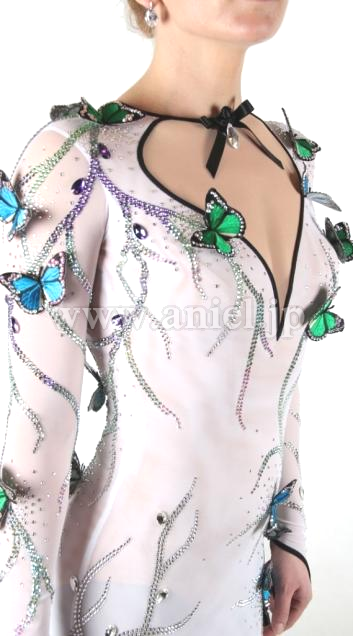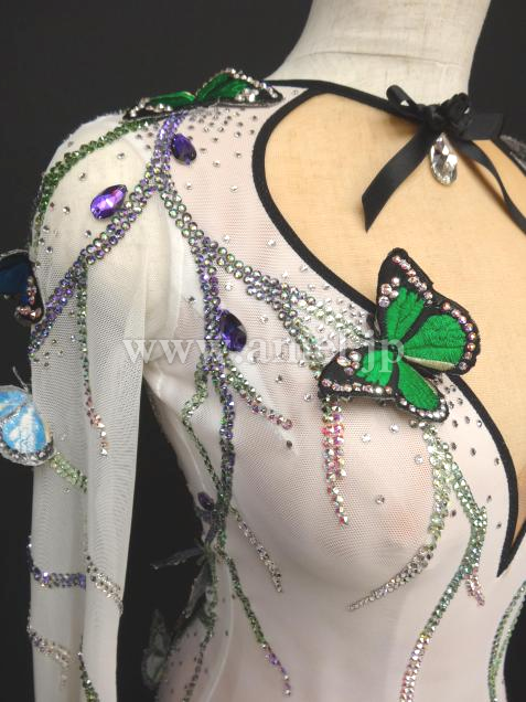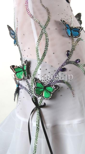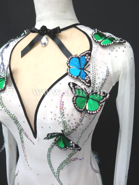 本物の蝶々が羽根を休めているかのようなデザインのドレスです。